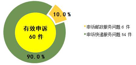 2.受理的有效申诉(确定企业责任的)为60件,环比上升20.0%,同比下降44.4%。有效申诉中涉及365体育手机版app下载_365最专业的数据服务平台_365bet体育365bet官网服务问题的6件,占有效申诉量的10.0%,环比上升200%,同比上升20.0%;涉及快递服务问题的54件,占有效申诉量的90.0%,环比上升12.5%,同比下降47.6%。